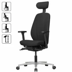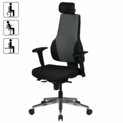 Bürostuhl MCW-A20, Schreibtischstuhl Drehstuhl, Ergonomisch Kopfstütze Stoff/Textil ~ Schwarz/grau