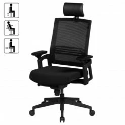 Bürostuhl MCW-J52, Drehstuhl Schreibtischstuhl, Ergonomisch Kopfstütze, Kunstleder ~ Schwarz