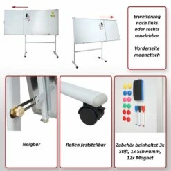 Whiteboard MCW-C85, Magnettafel Memoboard Pinnwand, Mobil Rollbar Inkl. Zubehör ~ 120x90cm