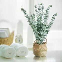 Die AMARE Kunstpflanzen sind stilvolle Produkte für diejenigen, die ihr zu Hause oder das Büro aufpeppen möchten. Ein schickes und äußerst realistisches Design in Verbindung mit hochwertigen und detailliert ausgearbeiteten Komponenten sorgt dafür, dass Sie viel Freude an Ihrem neuen Deko-Accessoire haben. Egal ob im Wohnzimmer, Esszimmer, auf Ihrem Balkon oder Büro – die AMARE Kunstpflanzen geben Ihrem Raum mit ihren satten grünen Blättern eine wohnliche Atmosphäre. Unser AMARE Eukalyptus ist 22x22x55cm groß und wird in einem sehr schicken geflochtenen Seegras-Korb geliefert. Der beschwerte Fuß lässt die Pflanzen sehr stabil stehen und verhindert ein Umstoßen durch Haustiere und Kinder. Wir bieten Ihnen mit unserem AMARE Kunstpflanzensortiment verschiedene Größen, Formen und Designs an, sodass Sie den passenden neuen grünen Mitbewohner für sich finden. Suchen Sie elegante Solitär-Pflanzen für Ihren Hausflur? Schauen Sie sich einmal unsere tollen Palmen an. Oder verträgt Ihr Schreibtisch im Büro mal ein wenig grüne Farbe? Dann werfen Sie einen Blick auf unsere kleineren Pflanzen. Stöbern Sie gerne durch unser Sortiment! Profitieren Sie von den vielen Vorteilen der AMARE Kunstpflanzen.
