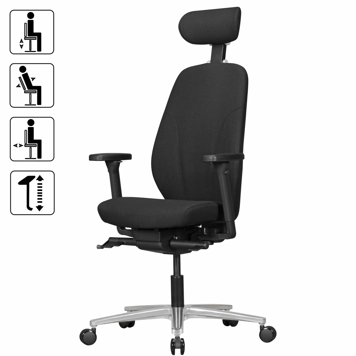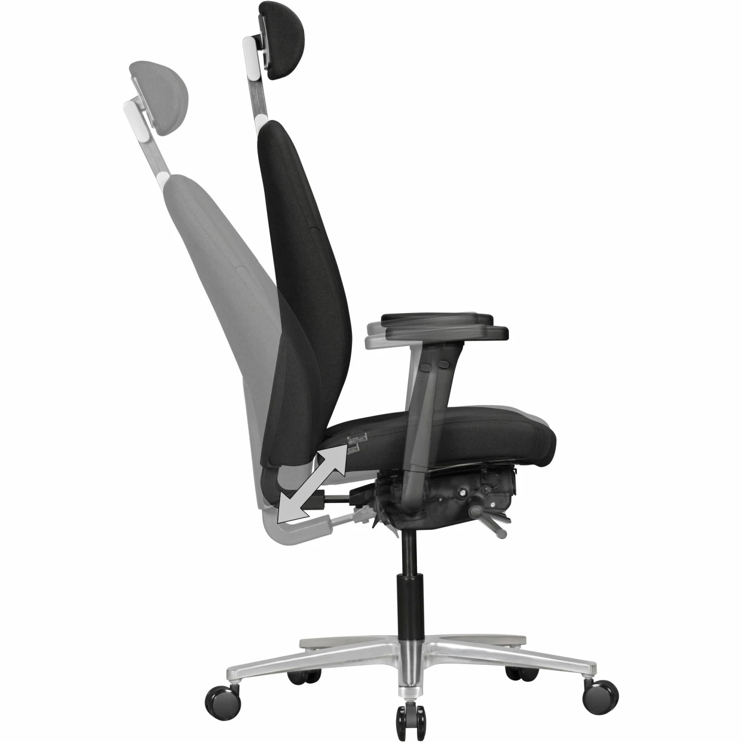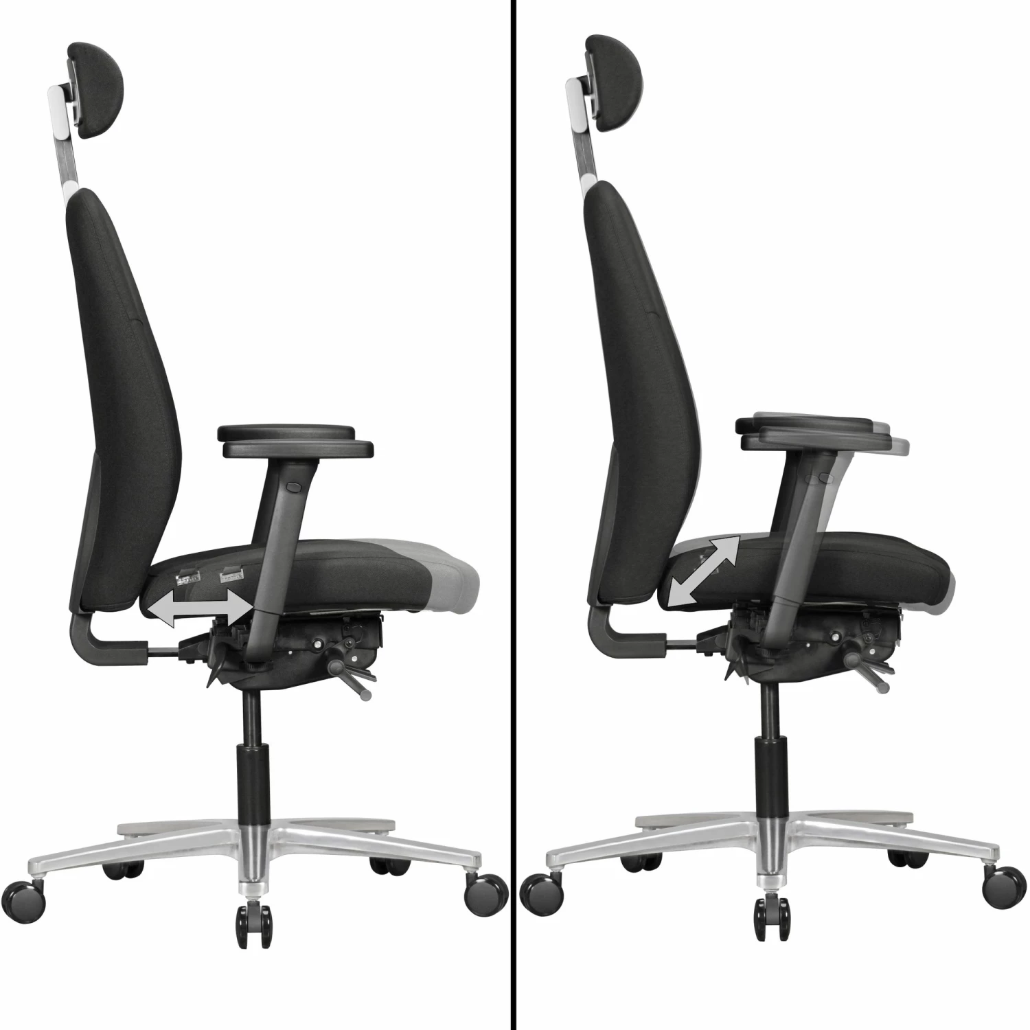 - 3-Punkt Synchronmechanik mit ergonomisch angeordneten Bedienelementen – Neigungswinkel der Rückenlehne 3-stufig arretierbar