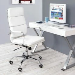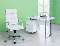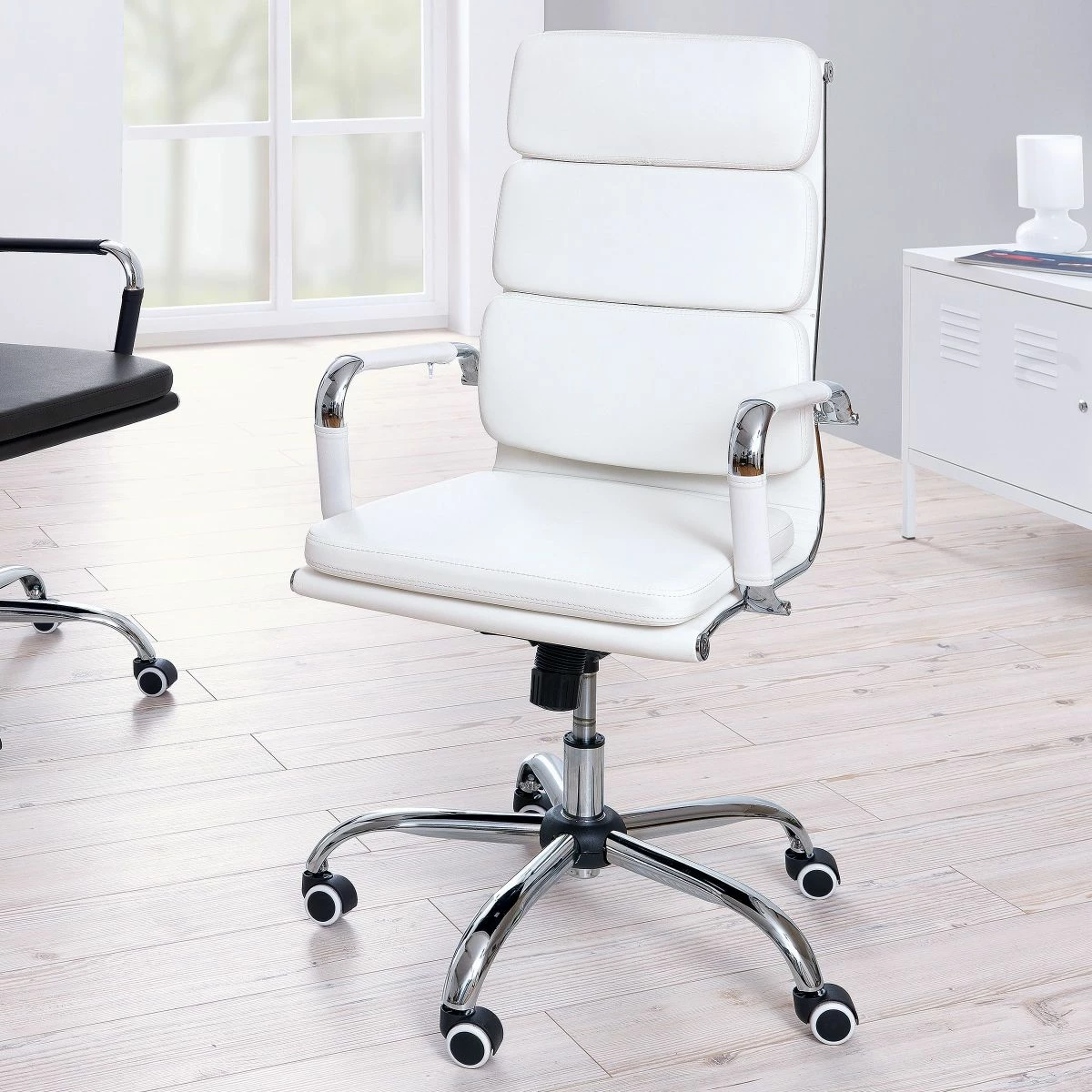 - Ansprechendes Design: Die Kombination aus verchromten Metallteilen und einem Bezug aus hochwertigem Kunstleder verleihen dem Chefsessel ein stilvolles und wertiges Aussehen.
