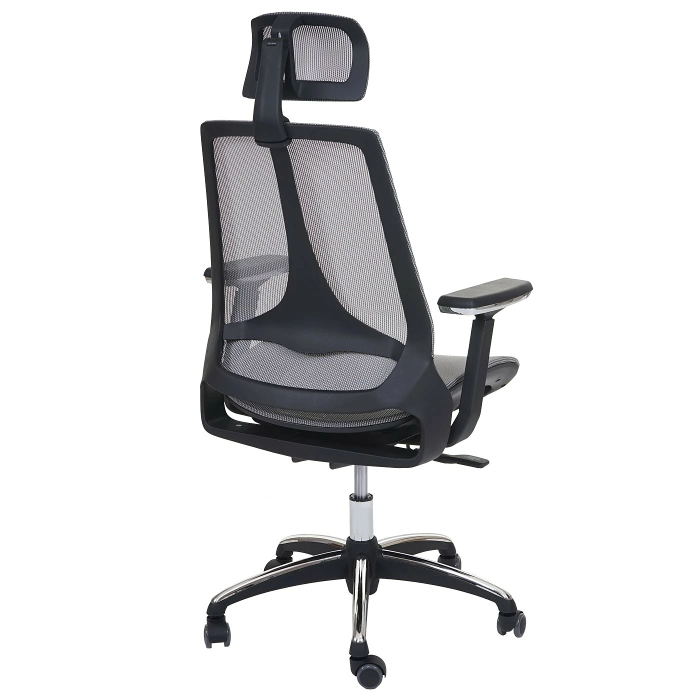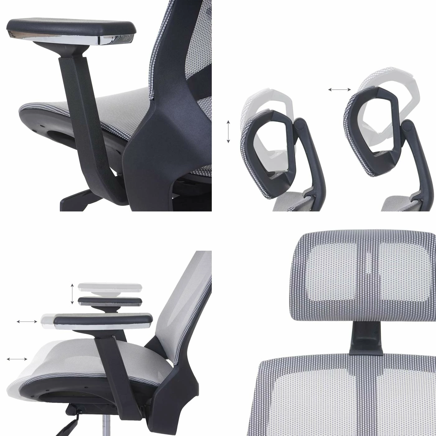 Dieser Bürostuhl in modernem und elegantem Design ist nicht nur etwas fürs Auge, sondern erfüllt höchste Ansprüche in Sachen Komfort und Stabilität. Die vielen, individuell verstellbaren Funktionen sorgen für ergonomischen Sitzkomfort: Die Kopfstütze kann stufenlos in der Höhe verstellt und zusätzlich geneigt werden. Bei den Armlehnen können Sie die Höhe und Position verändern und die Sitzfäche lässt sich in der Tiefe verstellen, sodass Sie innerhalb kürzester Zeit Ihre perfekte Sitzposition finden und über viele Stunden hinweg entspannt arbeiten können. Abgerundet wird das Gesamtbild durch das stabile Fußkreuz, das noch etwas zusätzliche Eleganz im Erscheinungsbild schafft.