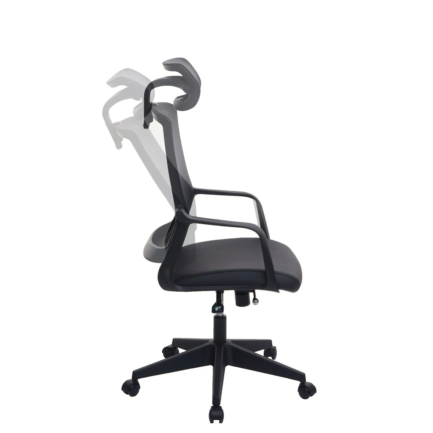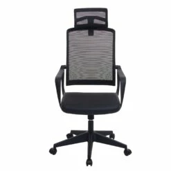 Dieser Bürostuhl in modernem Design ist nicht nur etwas fürs Auge, sondern erfüllt höchste Ansprüche in Sachen Komfort und Stabilität. Die zahlreichen Funktionen sorgen für einen ergonomischen Sitzkomfort: Die Kopfstütze kann stufenlos in der Höhe verstellt werden und die Rückenlehne lässt sich durch die Wippmechanik ganz einfach an Ihre Sitzposition anpassen. Die Netzbespannung der Rückenlehne sorgt für eine optimale Luftzirkulation, sodass Sie auch im Sommer nicht schwitzen werden und immer ein gutes Gefühl haben. Der Schreibtischsessel ist um 360° drehbar und lässt sich durch die Gasdruckfeder mühelos in der Höhe verstellen. Dank der bequemen Sitzpolsterung ist ein entspanntes Arbeiten über viele Stunden hinweg garantiert. Abgerundet wird das Gesamtbild durch das stabile Fußkreuz, das noch etwas zusätzliche Eleganz im Erscheinungsbild schafft.