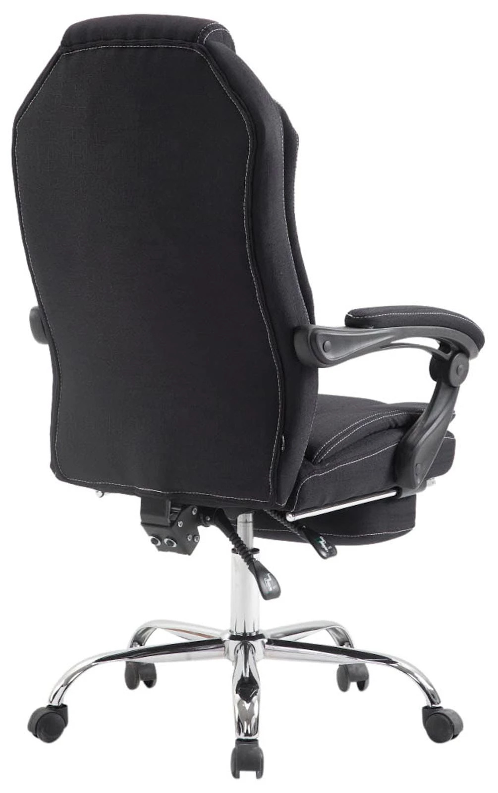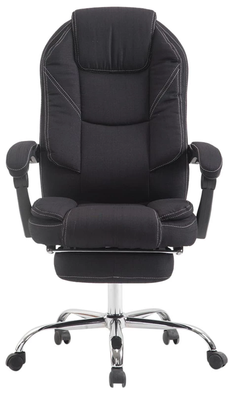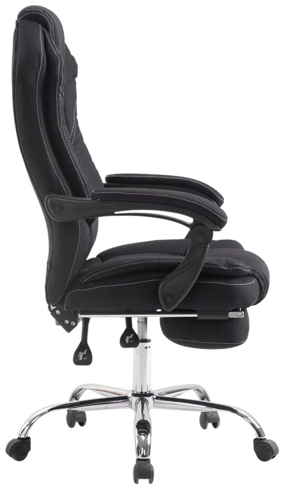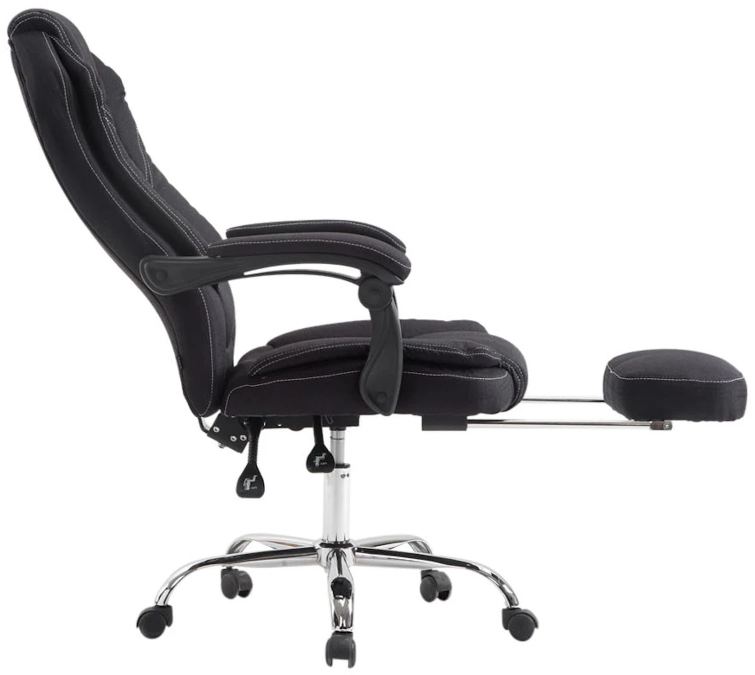 Mit dem Bürostuhl Castle ist Gemütlichkeit im klassischen Look angesagt. Eine hochwertige Polsterung und ein pflegeleichter Stoffbezug sorgen für ein komfortables Sitzgefühl, welches auch bei längerem Verweilen bestehen bleibt. Die leicht verstellbare Fußstütze und Rückenlehne sorgen zusätzlich für eine angenehme Pause zwischendurch, bei der sich entspannt zurückgelehnt werden darf und die Beine hochgelegt werden können. Dank der stufenlos verstellbaren Sitzhöhe garantiert der Bürostuhl Castle zudem jederzeit ein ergonomisches Sitzen. Dabei steht er standsicher auf fünf Leichtlaufrollen und einem Gestell aus Metall in Chromoptik. Egal ob Hart- oder Teppichböden – Sie werden immer leicht und locker über den Boden rollen können.