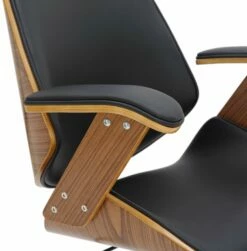 Eine besonders stilvolle Kombination aus pflegeleichtem, modernem Kunstleder und edlem Holzrahmen mit Walnuss-Furnier verspricht der Bürostuhl Chicago.