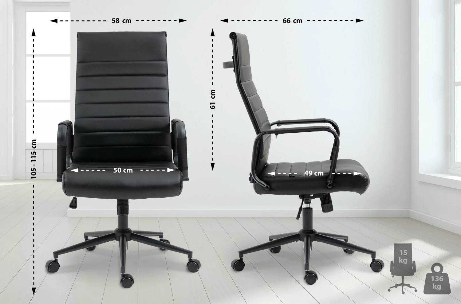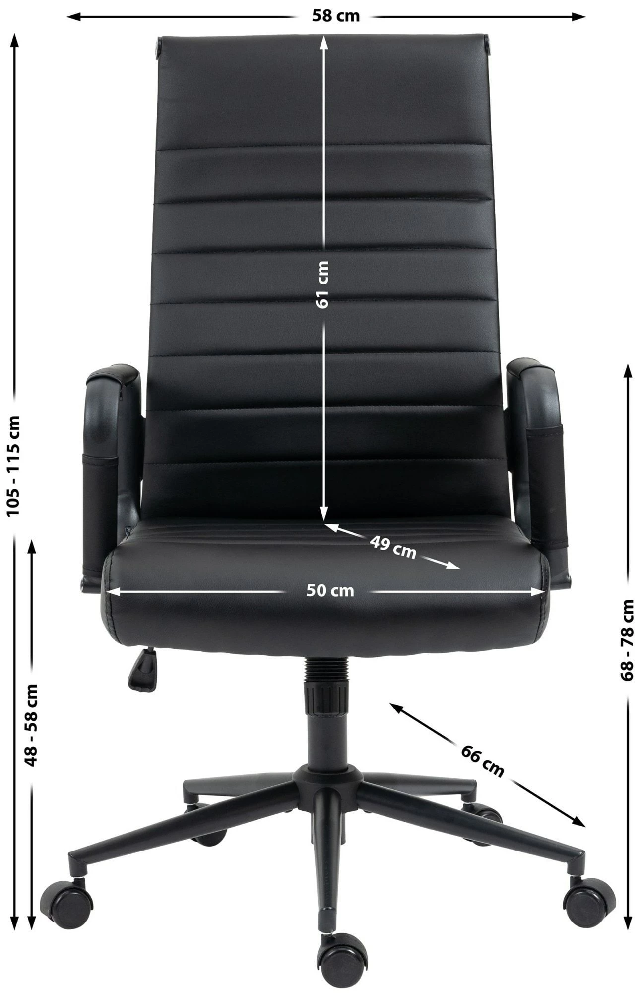 Höhe Armlehne (vom Boden): 68 – 78 cm