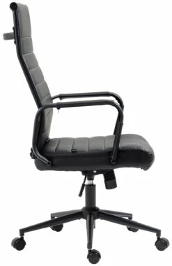 Der exklusive Bürostuhl Kolumbus überzeugt nicht nur mit seinem modernen Look, auch in Sachen Komfort kann ihm keiner etwas vormachen. Seine hochwertige Polsterung und der pflegeleichte Kunstlederbezug sorgen für ein angenehmes Sitzgefühl auch über mehrere Stunden. Zudem ist die Sitzhöhe stufenlos verstellbar und garantiert ein ergonomisches Sitzen. Des Weiteren ist der Schreibtischstuhl mit einem Wippmechanismus versehen, der für mehr Bewegungsfreiheit sorgt. Das elegante Metallgestell in Chrom-Optik und die stabil geschwungenen Armlehnen mit Kunstlederbezug geben dem Ganzen noch das gewisse Extra. Die Stabilität wird durch das Chromoptik Metallgestell gewährleistet, das mit dem schwarzen Bezug auch in Schwarz erhältlich ist. Durch die fünf Leichtlaufrollen kann man leicht und locker über den Boden rollen – egal ob auf Hart- oder Teppichböden.