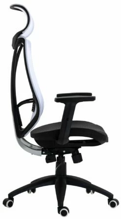 Dieser Drehstuhl beeindruckt durch sein modernes Design und die solide Verarbeitung. Der Sitzkomfort wird durch die verstellbaren Armlehnen und die ergonomische Rückenlehne gewährleistet. Durch die stufenlose Höhenverstellbarkeit und dem arretierbaren Wippmechanismus wird komfortables Sitzen auch über mehrere Stunden ermöglicht. Zudem verfügt dieser Schreibtischstuhl über einen pflegeleichten Netzbezug, der nicht nur schön aussieht, sondern auch besonders atmungsaktiv ist. Der Stuhl steht standsicher auf fünf Leichtlaufrollen und einem Gestell aus Kunststoff. Egal ob Hart- oder Teppichböden – man kann immer leicht und locker über den Boden rollen.