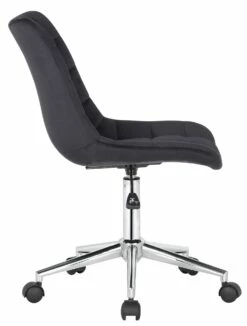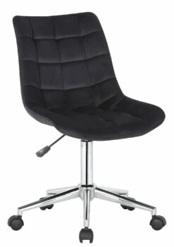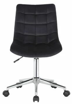 Der Bürostuhl Medford überzeugt nicht nur mit seinem modernen Look, auch in Sachen Komfort kann ihm keiner etwas vormachen. Der Drehstuhl ist mit einem Samtbezug versehen und dadurch besonders pflegeleicht. Zudem ist die Sitzhöhe stufenlos verstellbar und garantiert ein ergonomisches Sitzen. Die Stabilität ist durch das Metallgestell in Chromoptik gewährleistet. Durch die fünf Leichtlaufrollen kann man leicht und locker über den Boden rollen – egal ob auf Hart- oder Teppichböden. Die gesteppte Oberfläche und das elegante Chromgestell geben dem Ganzen noch das gewisse Extra und runden das Design ab.