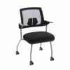 Der Netzbezug ist schick und funktional zugleich. Neben Atmungsaktivität überzeugt der Stoff durch hohe Strapazierfähigkeit. Rahmen und Gestell bestehen aus schwarzem Nylon sowie aus Aluminium in moderner Chrom-Optik. Der Stuhl bewegt sich auf PU-beschichtete Rollen, die empfindliche Böden schonen und geräuscharm sind.
