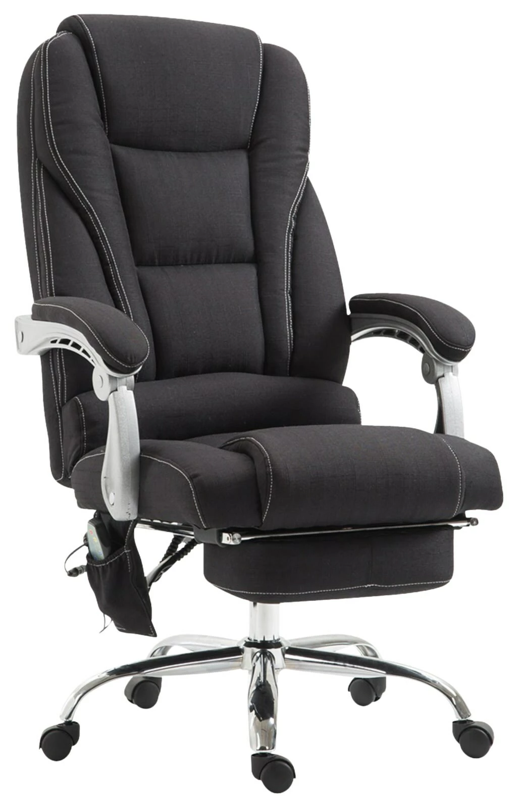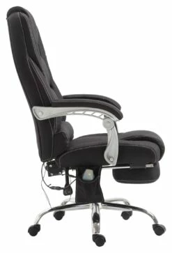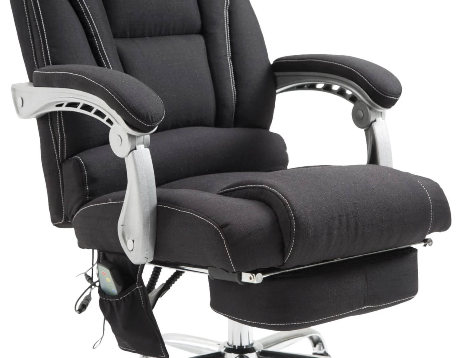 Auf außerordentlichen Sitzkomfort wirken sich darüber hinaus auch die Fußablage und die neigbare Rückenlehne des ergonomischen Stuhls aus – zurücklehnen und genießen! Der Schreibtischstuhl ist stufenlos höhenverstellbar und um 360 Grad drehbar. Dabei steht er sicher auf dem Metallgestell und fünf Leichtlaufrollen, die den Stuhl auch auf Hart- und Teppichböden mobil halten. Der Massagestuhl ist bis 150 kg belastbar.