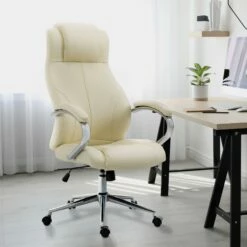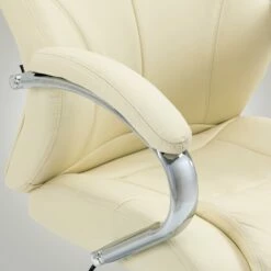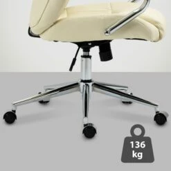 Dieser exklusive Bürostuhl überzeugt nicht nur mit seinem modernen Look, auch in Sachen Komfort kann ihm keiner etwas vormachen. Seine hochwertige Polsterung sorgt für ein angenehmes Sitzgefühl über mehrere Stunden hinweg. Für den Bezug des Sitzes und der Rückenlehne wurde hochwertiges Rindsleder verwendet. Die Rückenlehne hat eine angenehme S-Form und die Sitzhöhe ist stufenlos verstellbar und garantiert ein ergonomisches Sitzen. Des Weiteren ist der Schreibtischstuhl mit einem Wippmechanismus versehen, der für mehr Bewegungsfreiheit sorgt. Die Stabilität ist durch das Metallgestell in Chromoptik gewährleistet. Durch die fünf Leichtlaufrollen kann man leicht und locker über den Boden rollen – egal ob auf Hart- oder Teppichböden.