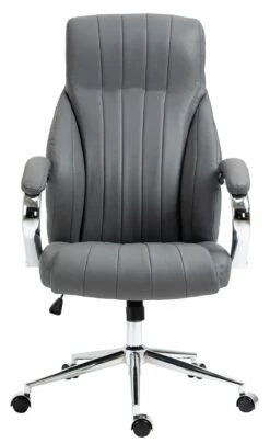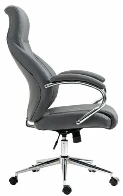 Dieser exklusive Bürostuhl überzeugt nicht nur mit seinem modernen Look, auch in Sachen Komfort kann ihm keiner etwas vormachen. Seine hochwertige Polsterung sorgt für ein angenehmes Sitzgefühl über mehrere Stunden hinweg. Für den Bezug des Sitzes und der Rückenlehne wurde hochwertiges Rindsleder verwendet. Die Rückenlehne hat eine angenehme S-Form und die Sitzhöhe ist stufenlos verstellbar und garantiert ein ergonomisches Sitzen. Des Weiteren ist der Schreibtischstuhl mit einem Wippmechanismus versehen, der für mehr Bewegungsfreiheit sorgt. Die Stabilität ist durch das Metallgestell in Chromoptik gewährleistet. Durch die fünf Leichtlaufrollen kann man leicht und locker über den Boden rollen – egal ob auf Hart- oder Teppichböden.