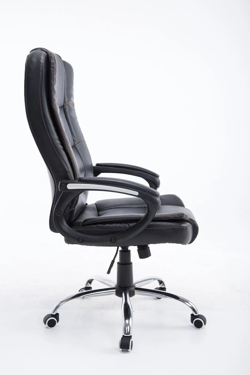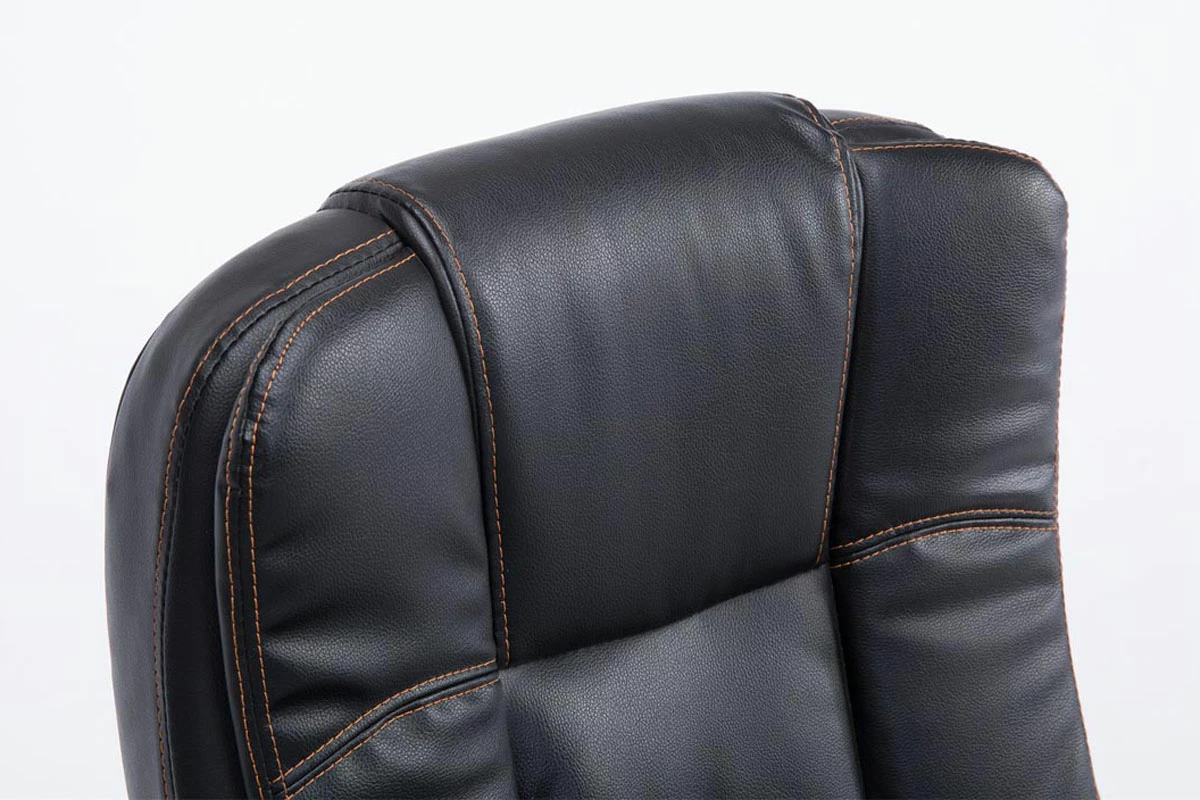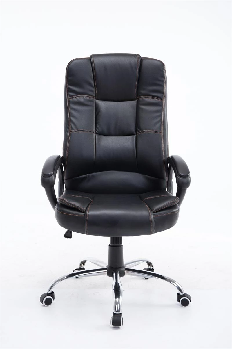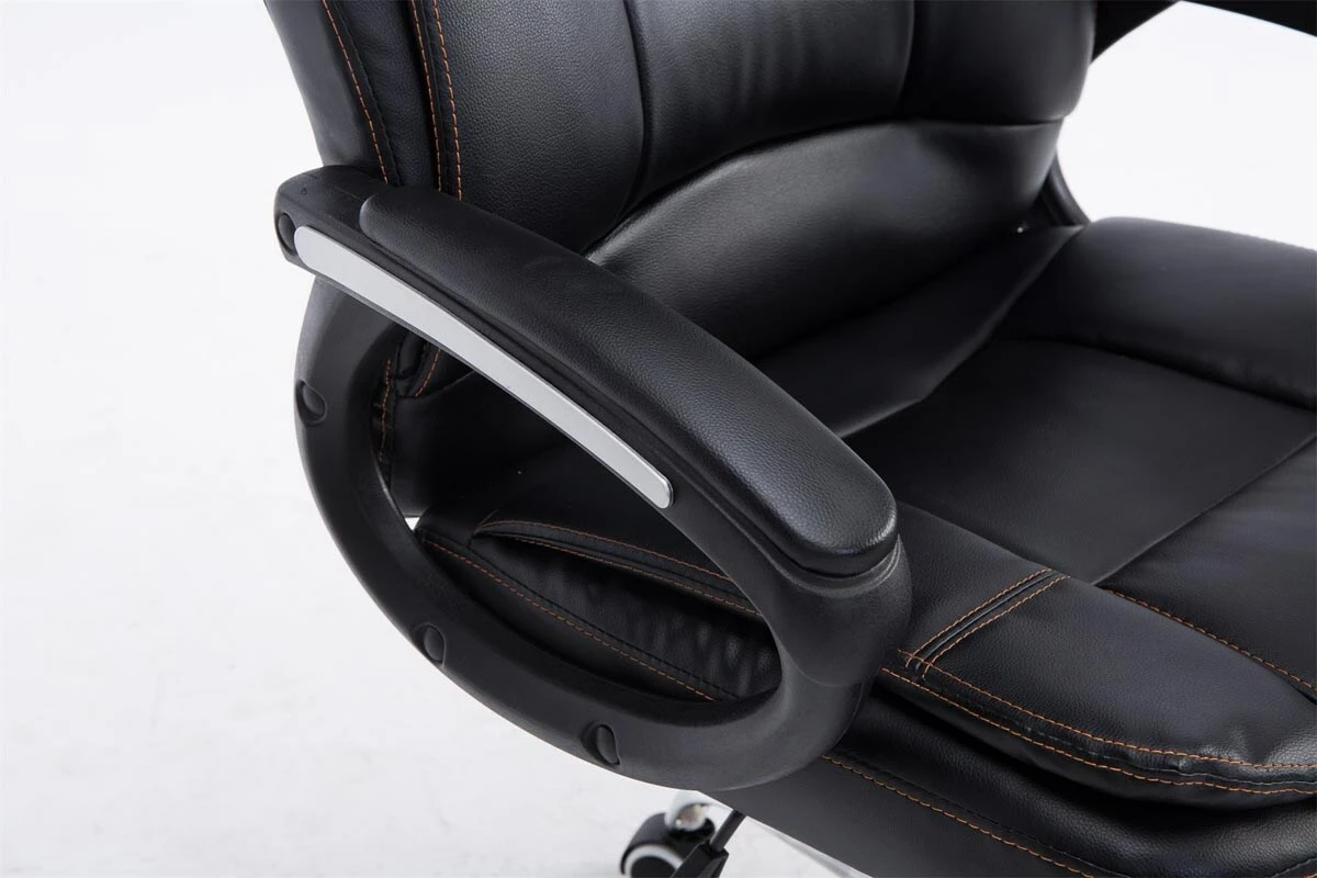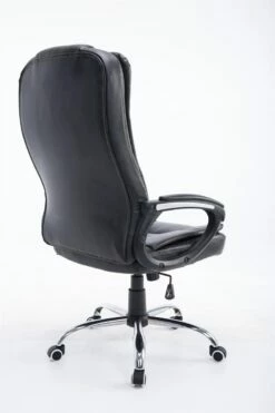 Der Chefsessel Enno ist ein exklusiver Bürostuhl mit einer sehr hochwertigen Polsterung und Kunstlederbezug. Kunstlederbezüge haben den Vorteil, dass sie elastisch sind und sich bei Entlastung wieder glatt ziehen. Dies sieht nicht nur schöner aus, sondern erhöht zusätzlich die Lebensdauer des Sitzbezuges. Das Gestell aus Metall in Chromoptik ist sehr stabil. Dank der verstellbaren Sitzhöhe ist ergonomisches Sitzen garantiert. Die Sitzhöhe ist mit dem Hebel unter dem Sitz stufenlos verstellbar. Der eingebaute Wippmechanismus sorgt für mehr Bewegungsfreiheit.Der Bürostuhl steht standsicher auf fünf Leichtlaufrollen. Egal ob Hart- oder Teppichböden – Sie werden immer leicht und locker über den Boden rollen können.