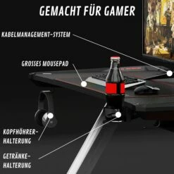 ?GEMACHT FÜR GAMER: Speziell für Gamer entwickelt – Getränkehalter, Kopfhörerhalter + 2 Kabelöffnungen mit Kabelmanagement-System. Perfektes Set-Up für professionellen eSport!