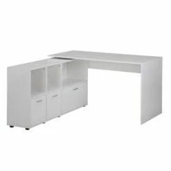 - Das Regal lässt sich drehen – dadurch ist der Bürotisch auch als Eckschreibtisch verwendbar