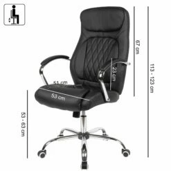 - Rücken, Sitz und Armlehnenpolsterung: Schwarz