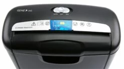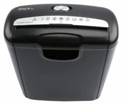 Der Genie 240S Aktenvernichter ist ein zuverlässiger Strip Cut (Streifenschnitt) Reißwolf in einem attraktiven schwarz-silbernen Design. Er ist in der Lage bis zu 6 Blatt DIN A4 (80g/m²) oder 1 Kreditkarte (zerstört in 8 Teile) pro Arbeitsgang zu vernichten. Der Aktenvernichter hat ein separates Schneidwerk und einen getrennten Auffangbehälter für CDs/DVDs und Kreditkarten. Die automatische Start-/Stopp-Funktion und der Hauptschalter am Shredder (AUTO/AUS/RÜCKWÄRTS) machen die Bedienung sehr einfach. Der Aktenvernichter ist außerdem mit einer Clear-Funktion zur Reinigung des Schneidwerks, einem Überhitzungsschutz, niedrigem Energieverbrauch, Direktstromanschluss (220 Volt, kein Adapter erforderlich) und einem Geräuschpegel von 72 dB ausgestattet. Die Schnittgröße beträgt ca. 6 mm breite Streifen, was der Sicherheitsstufe P-2 nach DIN 66399 entspricht. Die Einzugsgeschwindigkeit beträgt 2,50 m/min (bei 6 Blatt). Die Eingabeöffnung für Papier ist 220 mm und die Eingabeöffnung für Kreditkarten beträgt 57 mm. Der Aktenvernichter hat eine Größe von 292 x 326 x 142 mm (H x B x T) und ein Gewicht von ca. 1,38 kg. Der Papierkorb hat ein Volumen von ca. 10 Litern.