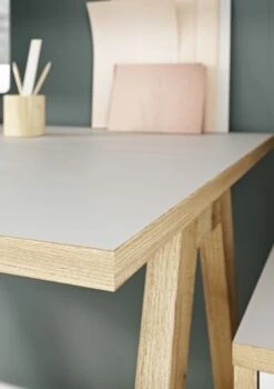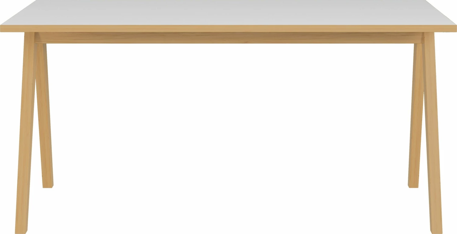 Das aus Massivholz gefertigte A-Fuß-Gestell gibt dem Büromöbel einen festen Stand. Hochwertige ABS-Kanten machen es zudem äußerst stoß- und schlagfest und die Melaminharzbeschichtung sorgt für eine kratzfeste Oberfläche.