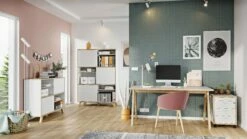 Germania Schreibtisch 4173-513 GW-Helsinki, in Weiß/Navarra-Eiche-Nb., 160 x 75 x 80 cm (BxHxT), Das Büroprogramm GW-Helsinki von Germania ist in Weiß und den auffälligen Absetzungen in Navarra-Eiche-Nb. die moderne Interpretation des beliebten skandinavischen Einrichtungsstils.