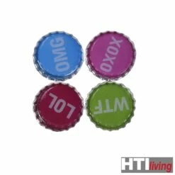 Ein Set aus 4 wunderschön gestalteten Magneten für Ihre Kühlschranktür oder Ihr Memoboard – in Form von Kronkorken. In 3 Designs, Design nicht frei wählbar, Lieferung erfolgt nach dem Zufallsprinzip. Material: Metall. Maße: Ø 3 cm
