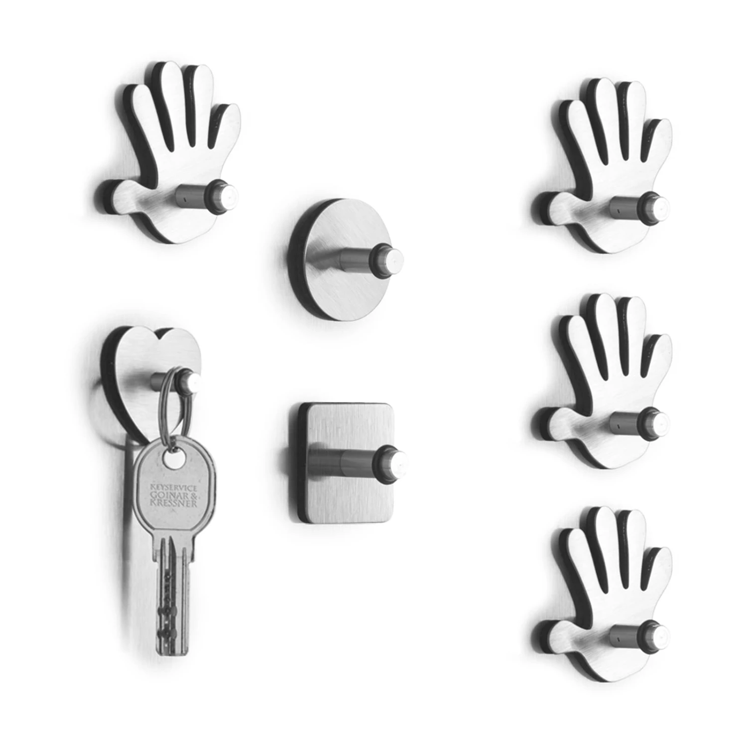 Sie bekommen 3 Magnete, die man als Haken nutzen kann, welche im Motiv sortiert sind- die Form wird je nach Lagerbestand per Zufall geliefert: Herz, Hand, Viereck oder Kreis