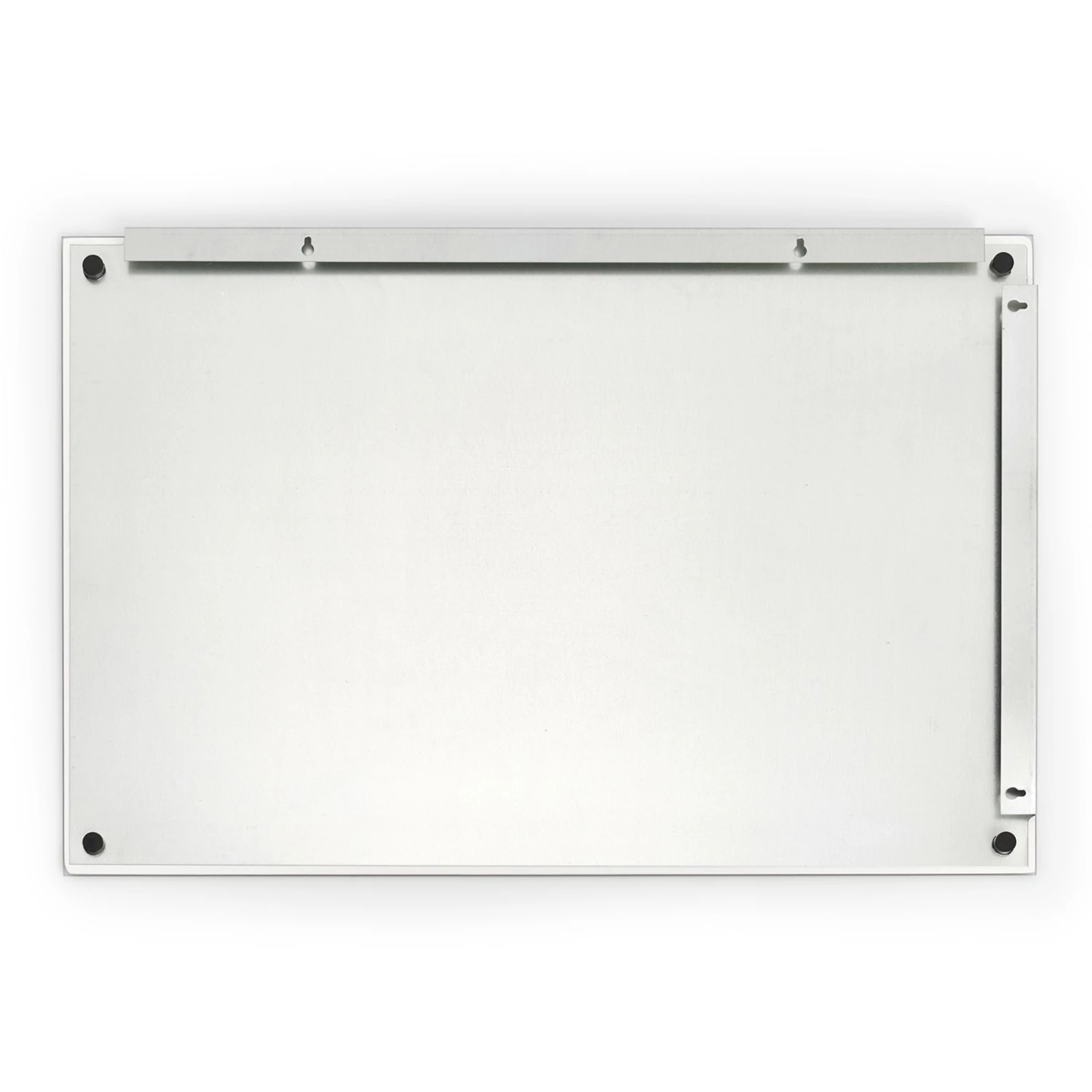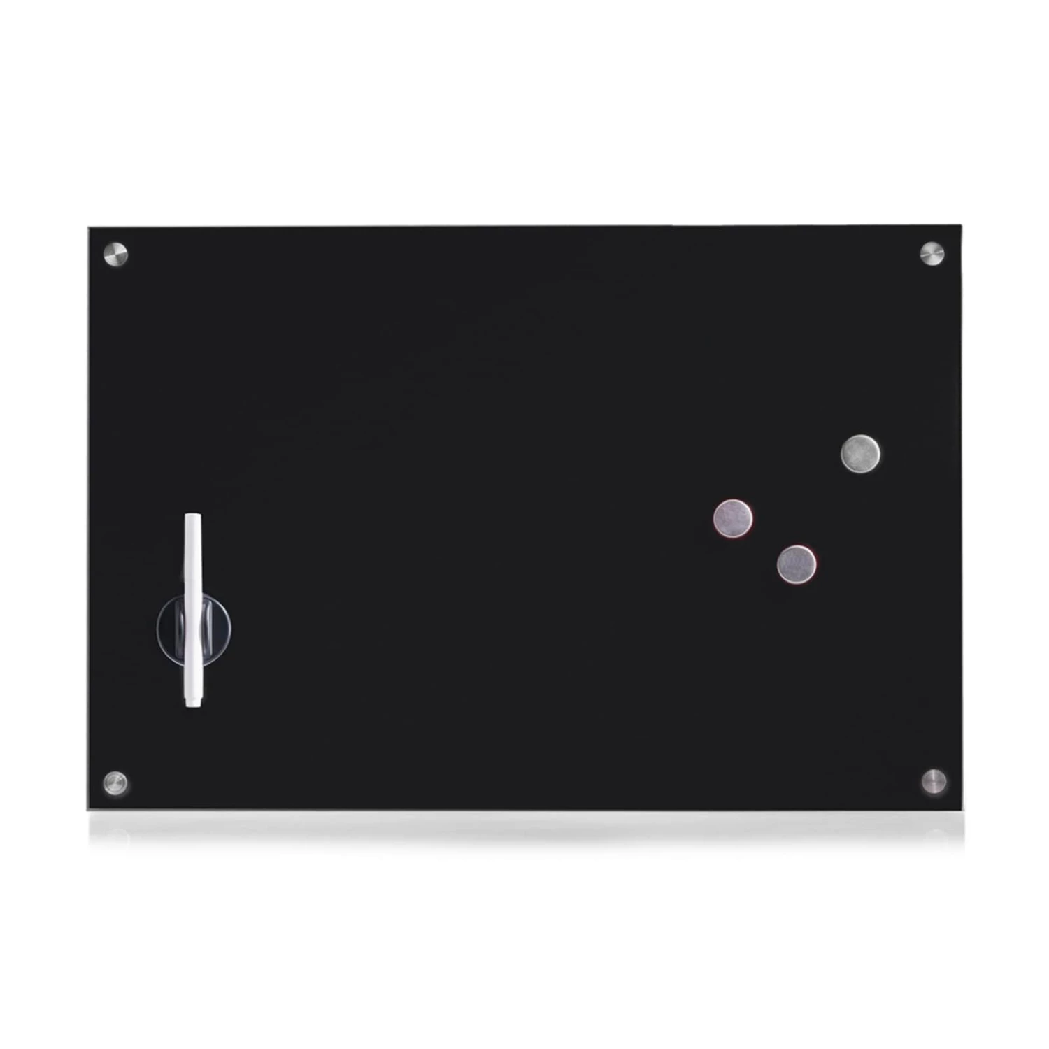 Dieses aussergewöhnliche Memobord verbindet Funktionalität und modernes Design- die perfekte Ergänzung für moderne Einrichtungskonzepte. Ob in Ihrem Büro, in der Küche oder im Flur, das dekorative Memobord ist ein echter Hingucker. Dank der beschreibbaren Glasoberfläche und dem mitgelieferten Stift können Sie Ihre wichtigen Termine schnell notieren. Mit einem Wisch ist Ihr Geschriebenes auch wieder weg. Postkarten, Notizzettel oder Fotos geraten nie mehr in Vergessenheit, denn diese können einfach mit den Magneten befestigt werden. Für eine einfache und schnelle Selbstmontage wird das benötigte Material mitgeliefert. Hinweis: Bedingt durch die Eigenschaften von Glas nutzen Sie am besten extra starke Magnete. Maße: 60 x 40 cm, Material: Glas
