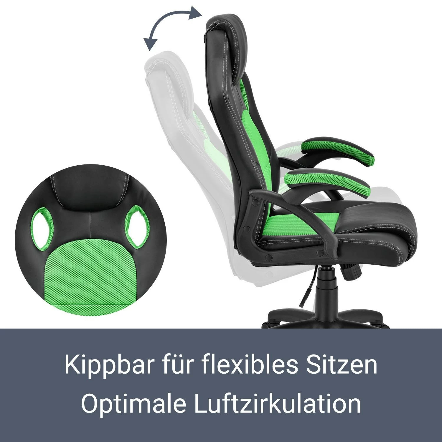 - Kippbare Rückenlehne & gepolsterte Armlehnen