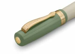 Der Student Füllhalter 60’s Swing, besticht durch ein sanftes und organisches Grün. Die Kombination aus Grün und goldenen Elementen wirkt harmonisch und unterstreicht die nostalgische, bauchige Form der Serie. Passend zum Motto der Swinging Sixties: Harmonie und Frieden.