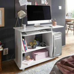 - Schreibtisch ist dank der unten angebrachten Rollen leicht zu bewegen