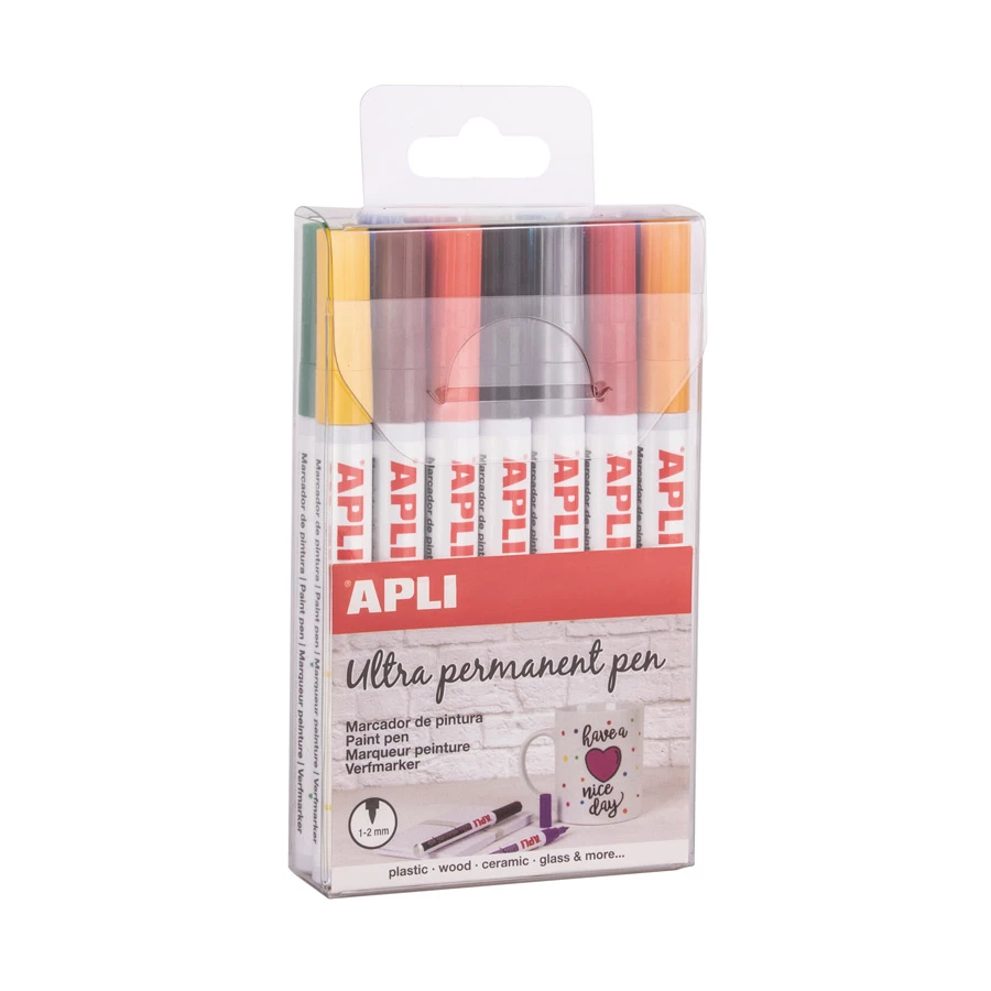 Farbmarkierungen mit feiner Spitze (1-2 mm), 14 verschiedene Farben: schwarz, blau, grün, rot, rosa, gelb, dunkelgelb, ocker, braun, grau, lila, lila, hellblau und weiß. Marker auf Ölbasis, langlebig, perfekt für glatte Streifen und wasserabweisend (beständig bis 60°C). Kann auf vielen Oberflächen wie Keramik, Geschirr, Stein, Glas oder Holz verwendet werden. Nicht für die Spülmaschine geeignet.