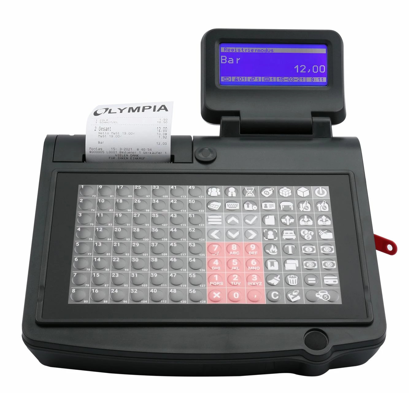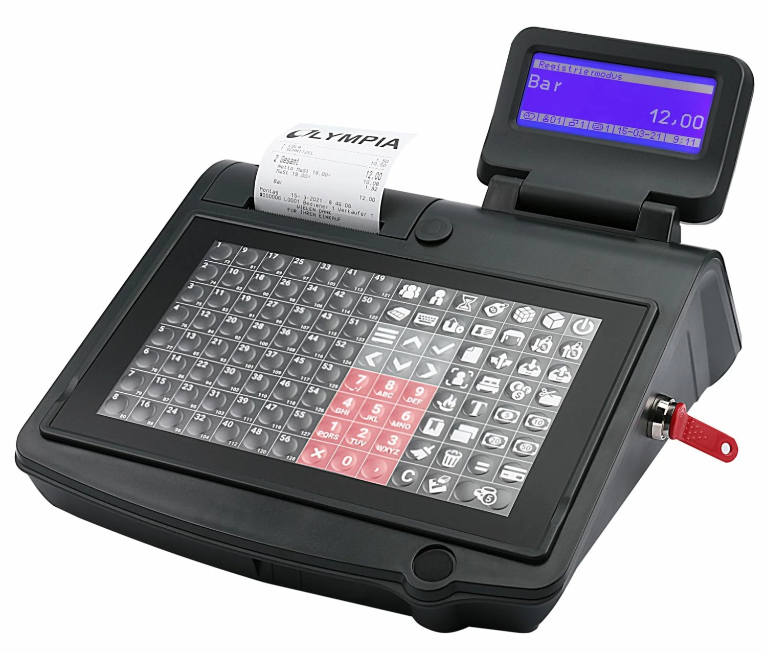 Die Olympia CM 985 Registrierkasse ist eine leistungsstarke Kasse, die sich besonders für den Einsatz im Gastronomiebereich eignet. Hier sind die wichtigsten Spezifikationen und technischen Daten: