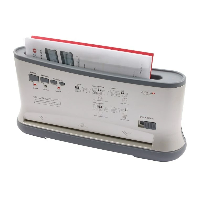 Das OLYMPIA TBL1300 ist ein 2-in-1-Gerät, das Thermobinden und Heiß- und Kaltlaminieren in einem Gerät vereint. Hier sind einige Details zu den Funktionen des Geräts: