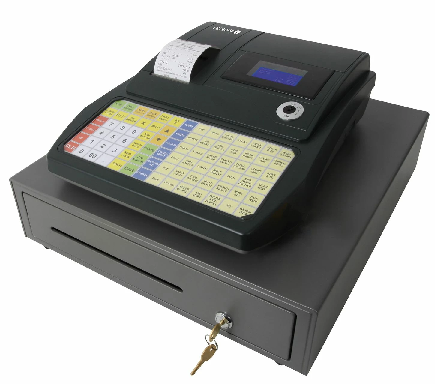 Lieferumfang: Registrierkasse, SD Karte, Anleitung, USB-_x0003_Kabel USB A – USB B, Programmierkabel, 1 Bonrolle, TSE 3 Jahres-Lizenz, Funktionsschlüsselsatz 2x A3,2x Schubladenschlüssel, TSE Box