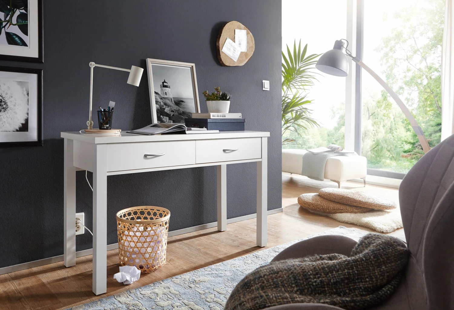 - Schreibtischstuhl kann unter Tischplatte geschoben werden