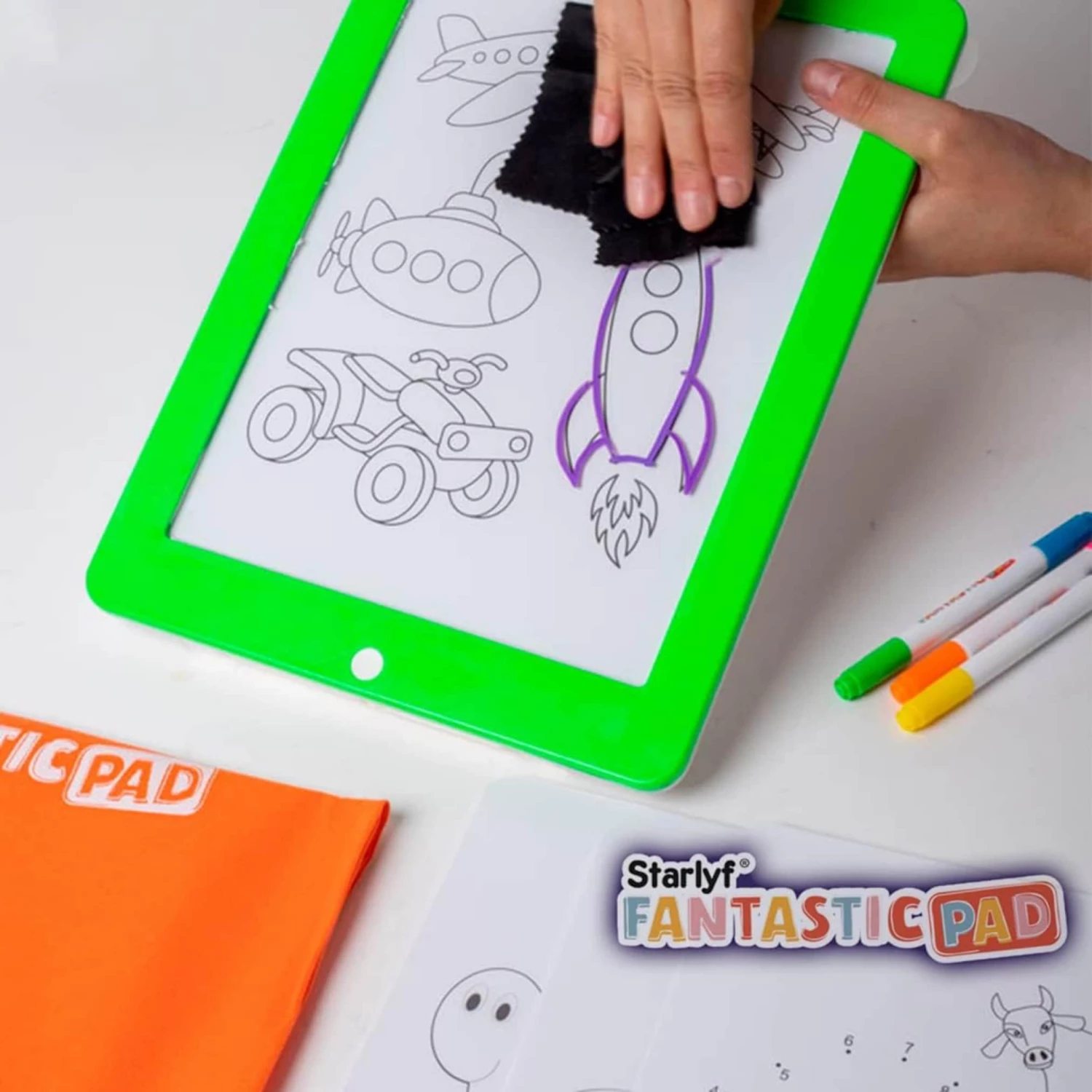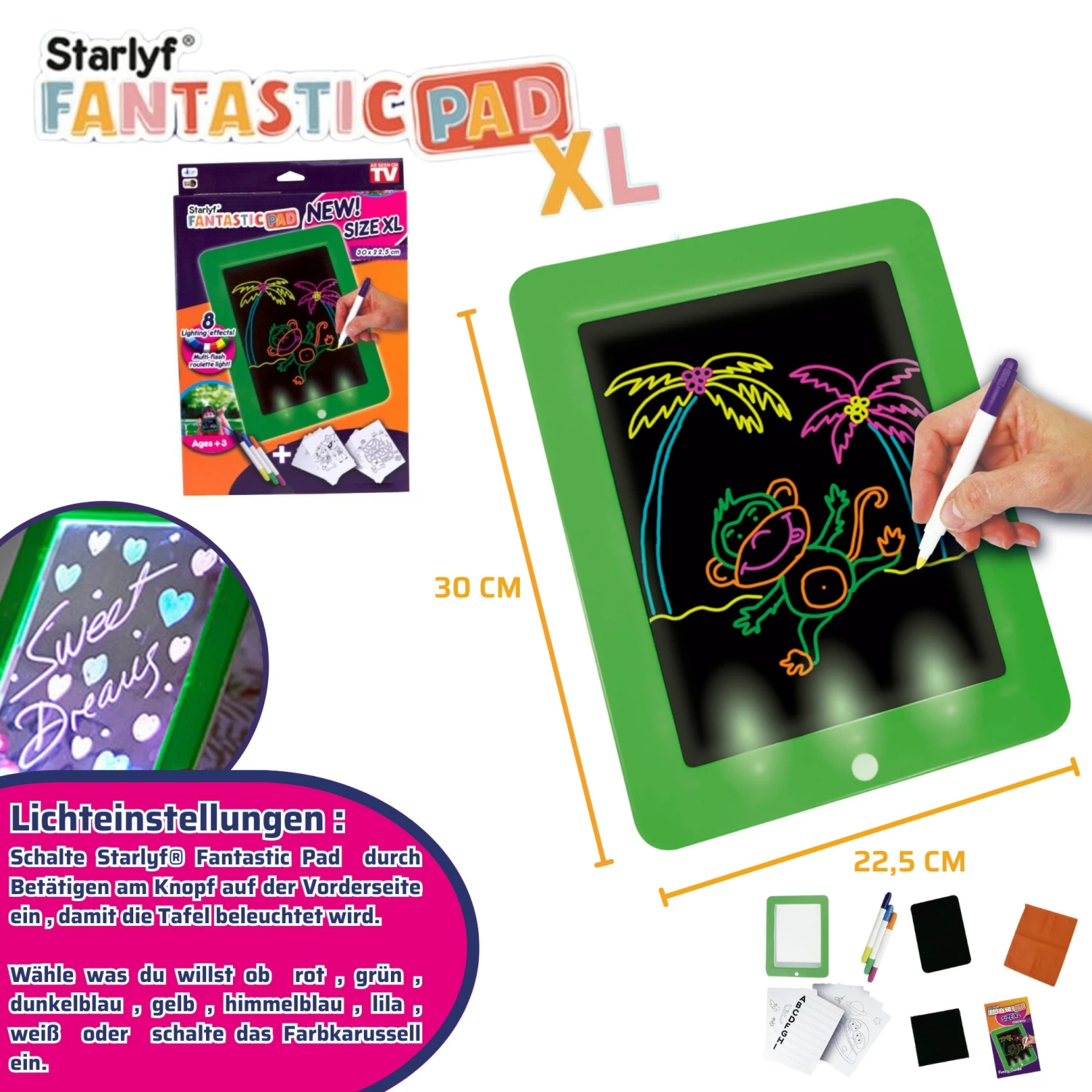 Starlyf® Fantastic Pad XL- Die magische Mal-Tafel für Kinder ab drei Jahren, mit der Lernen Spaß macht! Die mehrfarbige Zaubertafel eignet sich perfekt als Geschenk für Jungen und Mädchen. Mit viel Abwechslung können die Kinder mit der Schreibtafel spielerisch ihre Fein-Motorik verbessern und ihre Kreativität und Fantasie ausleben! Mit 30 verschiedenen Vorlagen wird die Hand-Augen-Koordination der Kinder geschult. Übungen zum Buchstaben schreiben wird fast nebenbei die Handschrift verbessert.