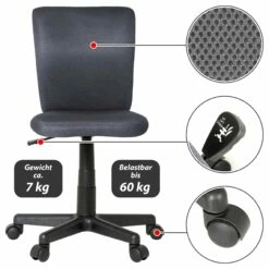 – Der Stuhl ist um 360 Grad drehbar und bis max. 60 kg belastbar