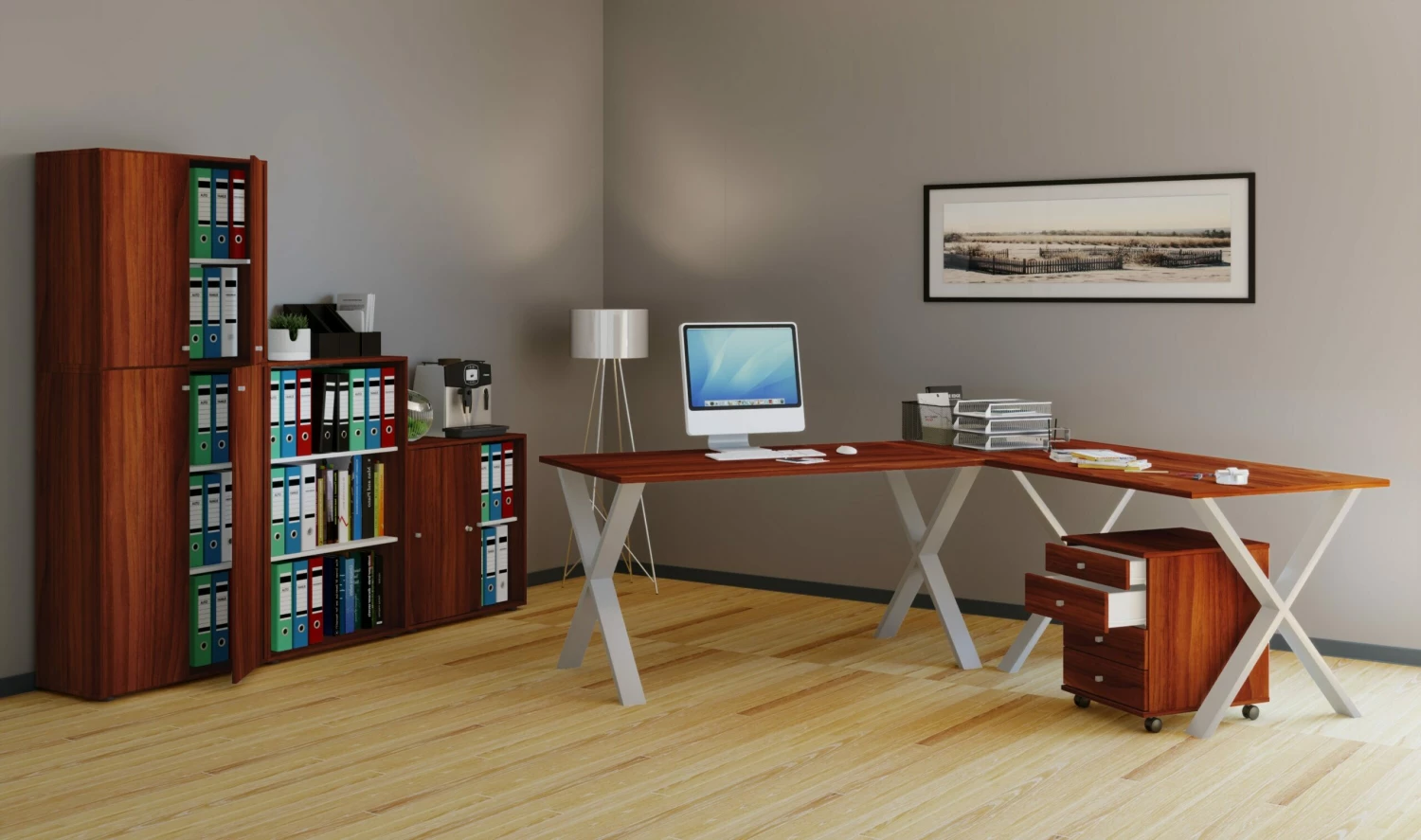 Passend zum Schreibtisch sind weitere Büroschränke und Rollcontainer der Serie “VCM Lona” erhältlich.