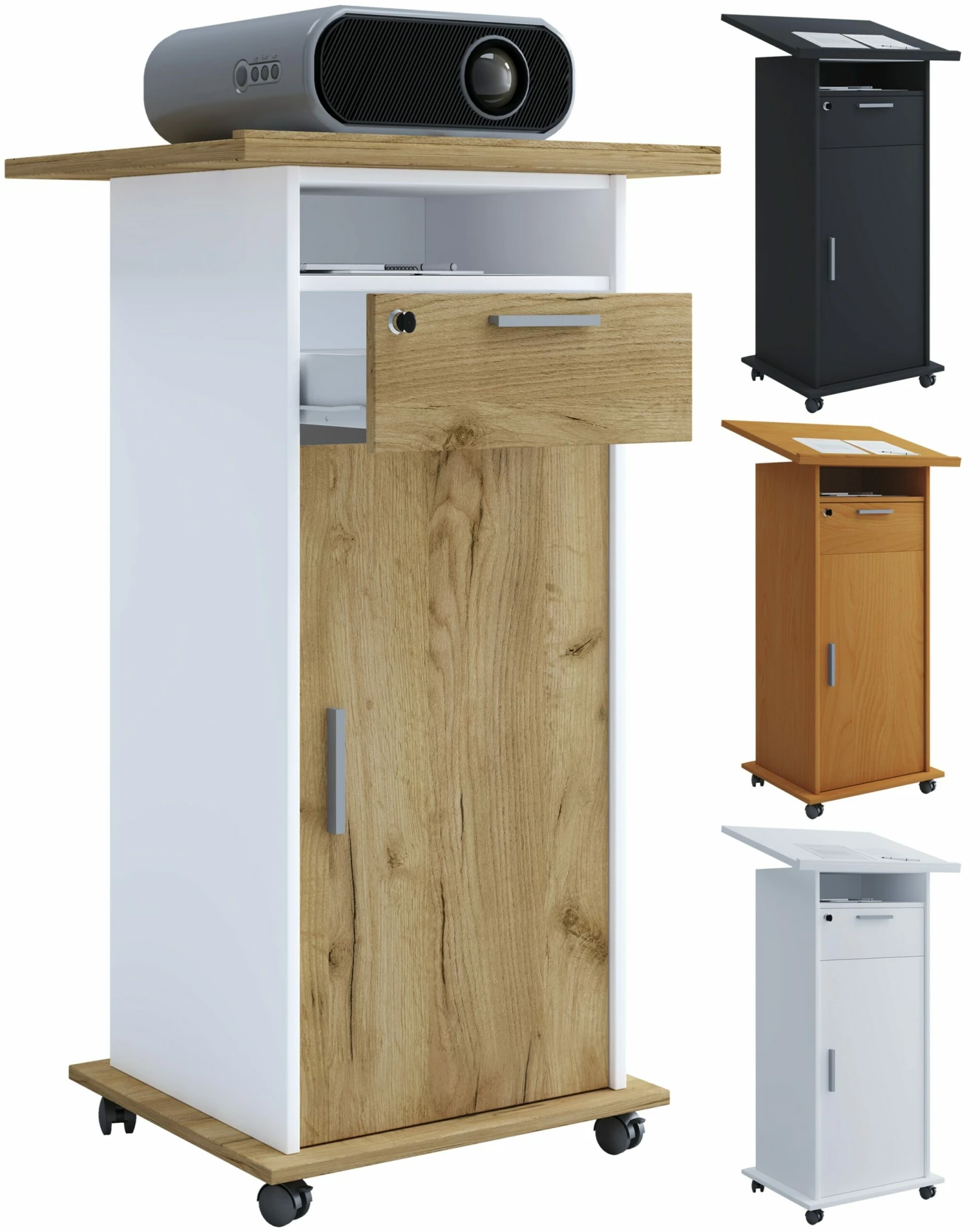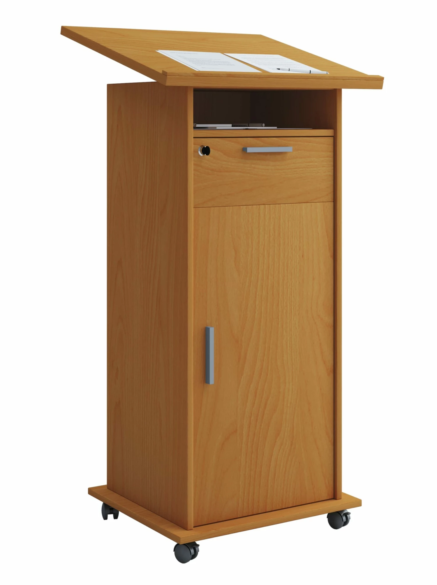 Das Stehpult “Meeta” zeichnet sich durch seine vielfältigen und auch abschließbaren Stauraum-Möglichkeiten aus. Leichtgängige Rollen sorgen für eine dauerhafte Mobilität.