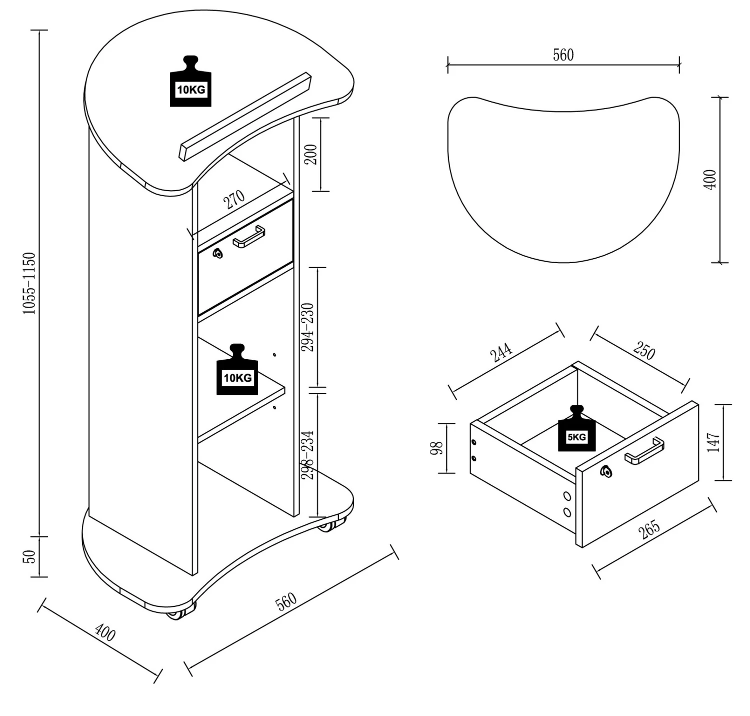 – Maße neigbare Rednerplatte ca. Breite 56 cm x Tiefe 37 cm