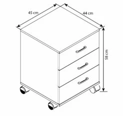 Drei Schubladen und die kompakte Abmessung ermöglichen praktischen Stauraum auf kleiner Fläche.