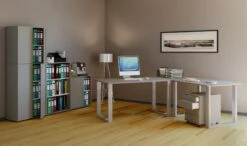 Passend zum Schreibtisch sind weitere Büroschränke und Rollcontainer der Serie “VCM Lona” erhältlich.