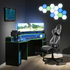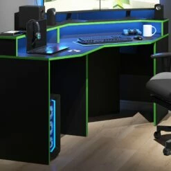 Unser Computertisch Kron ist auch in Kombination mit weiteren Möbeln der Serie Kron bestens geeignet für große Gaming-Setup-Nutzer. Durch das moderne Design bietet er perfekte Organisation und ausreichend Stauraum.