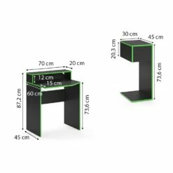 • Die Gesamtmaße vom Computertisch (kurz) betragen 70 x 87,2 x 60 cm (BxHxT) und vom Computerschrank 30 x 73,6 x 45 cm (BxHxT).