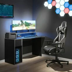 Unser Computertisch Kron ist auch in Kombination mit weiteren Möbeln der Serie Kron bestens geeignet für große Gaming-Setup-Nutzer. Durch das moderne Design bietet er perfekte Organisation und ausreichend Stauraum.