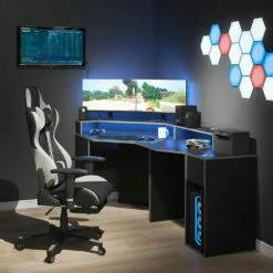 Der Eckschreibtisch nutzt idealerweise jeden Eckbereich optimal aus. Der kurze Computertisch passt sich den Räumlichkeiten super an. Die zusätzliche Bildschirmerhöhung schafft mehr Platz und erleichtert Ihnen das Erreichen der wichtigsten Utensilien.