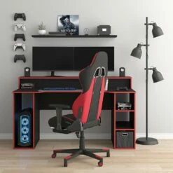 • Die zahlreichen Ablageflächen bieten Ihnen viele Verstaumöglichkeiten und Platz für all Ihr Computer- und Gamingzubehör.