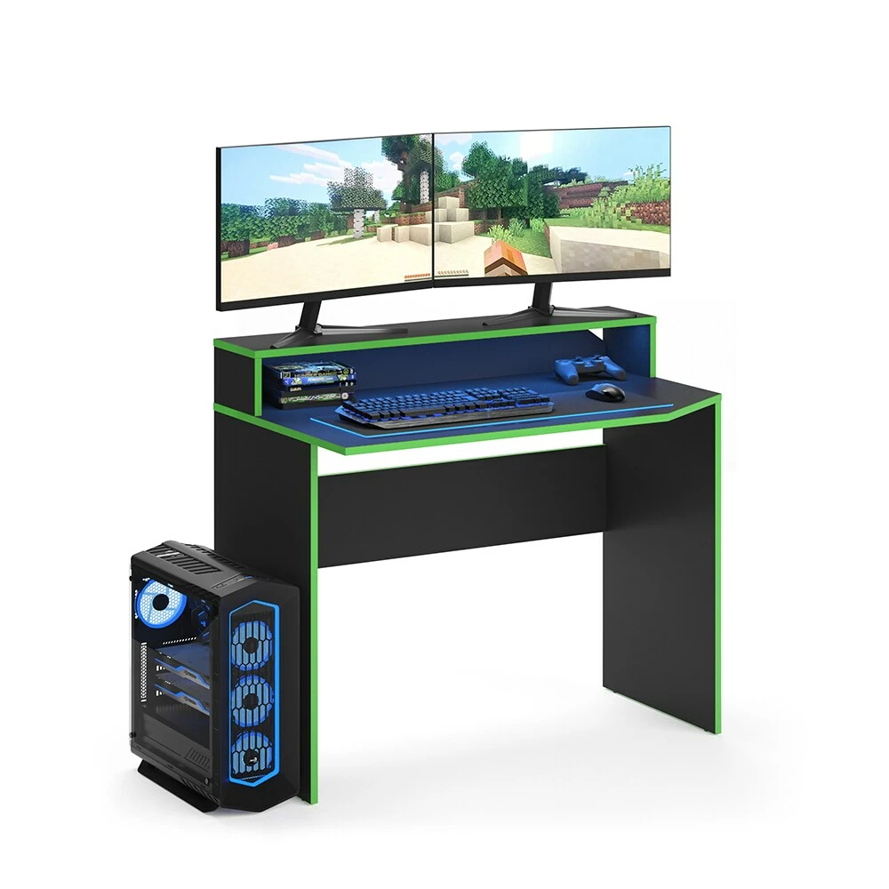 Der lange Computertisch passt sich den Räumlichkeiten super an. Die zusätzliche Bildschirmerhöhung schafft mehr Platz und erleichtert Ihnen das Erreichen der wichtigsten Utensilien.