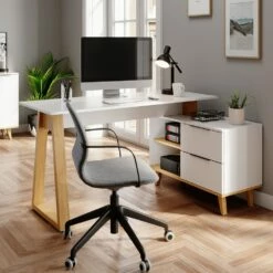 Das klar strukturierte Design mit mattem Weiß und Naturholzelementen schmeichelt jedem Wohnraum. Holen Sie sich diese heimische Gemütlichkeit nach Hause!